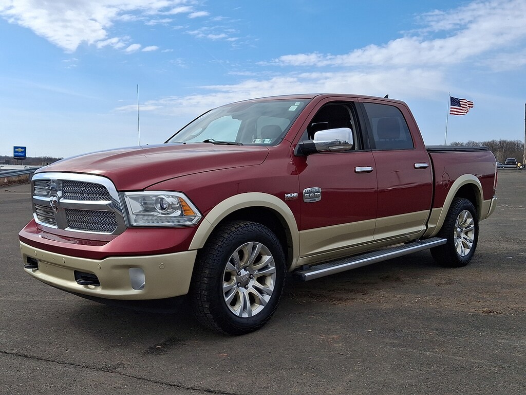 Leather Seats, Navigation, 4x4, Heated Driver Seat, Heated Rear Seat. Ram Longhorn with Deep Cherry Red Crystal Pearlcoat exterior and Lt Frost Beige/Brown interior features a 8 Cylinder Engine with 395 HP at 5600 RPM*.