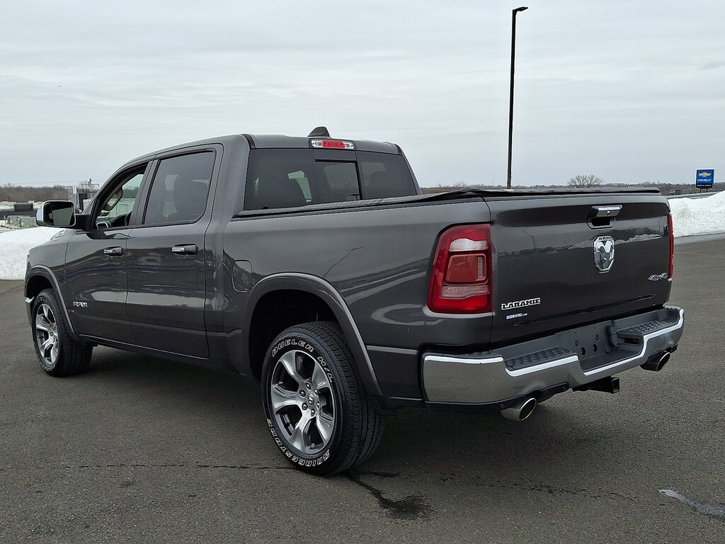 ENGINE: 5.7L V8 HEMI MDS VVT ETORQUE Active Noise Control System, Heavy Duty Engine Cooling, GVWR: 7,100 lbs, Dual Rear Exhaust w/Bright Tips, Hemi Badge, 23 Gallon Fuel Tank, 18 Aluminum Spare Wheel, LARAMIE LEVEL 1 EQUIPMENT GROUP Remote Tailgate Release, Auto High Beam Headlamp Control, Blind Spot & Cross Path Detection, Rain Sensitive Windshield Wipers, ParkSense Front/Rear Park Assist w/Stop, Tailgate Ajar Warning Lamp, Foam Bottle Insert (Door Trim Panel), Single Disc Remote CD Player, Rear 60/40 Folding Split Recline Seat, WHEELS: 20 X 9 PREMIUM PAINT/POLISHED Tires: 275/55R20 OWL All Season, BLACK, LEATHER TRIMMED BUCKET SEATS Bucket Seats, Rear 60/40 Folding Split Recline Seat, Center Console Parts Module, Full Length Upgraded Floor Console, RADIO: UCONNECT 4C NAV W/8.4 DISPLAY SiriusXM Traffic Plus, Disassociated Touchscreen Display, HD Radio, For Details, Visit DriveUconnect.com, 1-Yr SiriusXM Guardian Trial, GPS Navigation, SiriusXM Travel Link, No Satellite Coverage w/HI/AK/PR/VI/GU, ANTI-SPIN DIFFERENTIAL REAR AXLE, TRAILER TOW GROUP Trailer Brake Control, Power Chrome Trailer Tow Mirrors, Trailer Tow Mirrors, TRANSMISSION: 8-SPEED AUTOMATIC (8HP75).